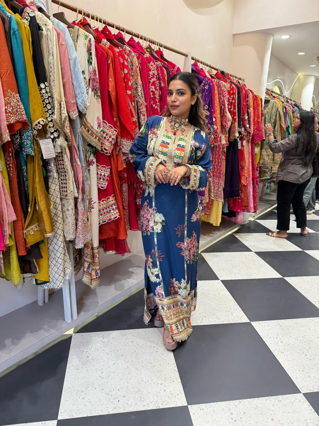 Radiate grace in the Nooré Ivory Blossom Ensemble, crafted on a soft ivory base with blooming florals and heritage-inspired embroidery. Lightweight yet striking, this statement piece brings timeless sophistication to festive gatherings and winter celebrations.